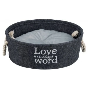 Trixie ”LOVE is a four Legged WORD” Hondenmand is een mooie hondenmand met een leuke tekst op de zijkant. Deze mand is isolerend, vuilafstotend en vormvast door de verstevigde rand. De mooie handgrepen aan de zijkant zorgen ervoor dat je de mand makkelijk kunt verplaatsen.